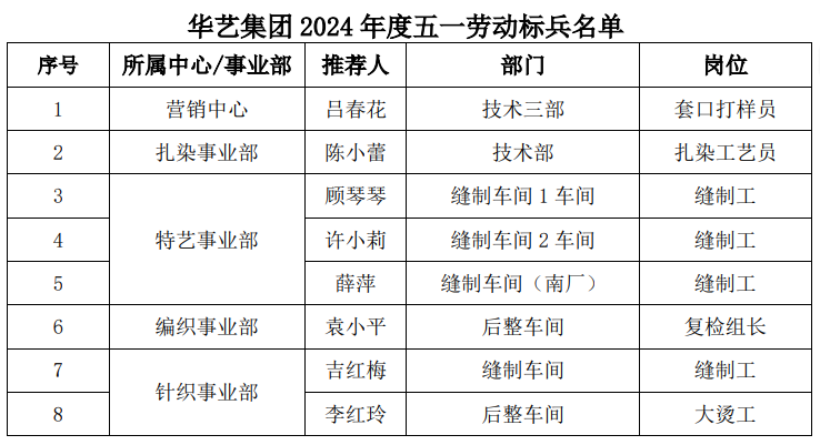 勞動(dòng)是一切幸福的源泉,為了弘揚(yáng)勞模精神、勞動(dòng)精神、工匠精神,樹立先進(jìn)工作標(biāo)桿,發(fā)揮示范帶頭作用,進(jìn)一步激發(fā)廣大員工在工作中的積極性和創(chuàng)造性,5月13日下午,江蘇華藝集團(tuán)舉辦了“五一勞動(dòng)標(biāo)兵”表彰活動(dòng)。本次活動(dòng)邀請(qǐng)營銷中心副總經(jīng)理景小連為受表彰的8名“五一勞動(dòng)標(biāo)兵”頒發(fā)榮譽(yù)證書和獎(jiǎng)勵(lì),感謝她們的付出和努力。 景總逐一為獲獎(jiǎng)?wù)哳C發(fā)榮譽(yù)證書及獎(jiǎng)勵(lì),每一份表彰都代表了公司對(duì)員工工作的高度認(rèn)可,感謝大家的辛勤付出,期待大家能繼續(xù)秉承這份榮譽(yù)所帶來的責(zé)任與使命,繼續(xù)發(fā)揚(yáng)勞模和工匠精神,成為更多人心中的榜樣。也希望華藝集團(tuán)全體員工以標(biāo)兵為榜樣,不斷提升自身素質(zhì)與能力,為企業(yè)發(fā)展貢獻(xiàn)智慧與力量。(文/人力資源部 謝兆梅) 附: