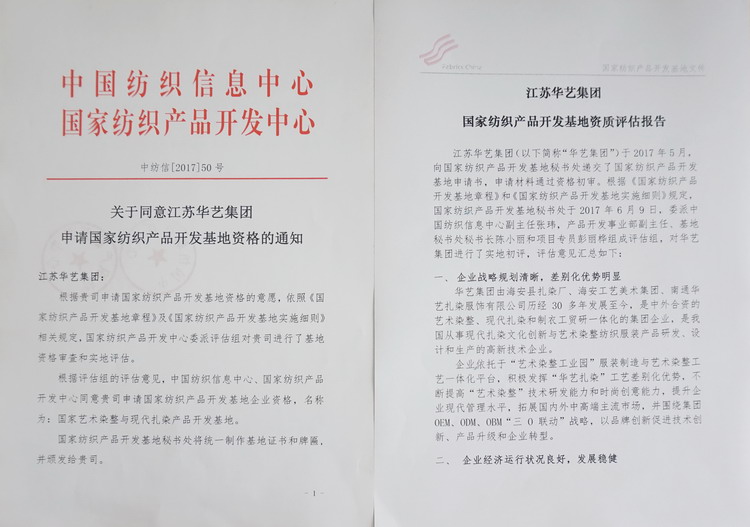江蘇華藝集團(tuán)獲批“國(guó)家藝術(shù)染整與現(xiàn)代扎染產(chǎn)品開(kāi)發(fā)基地” |