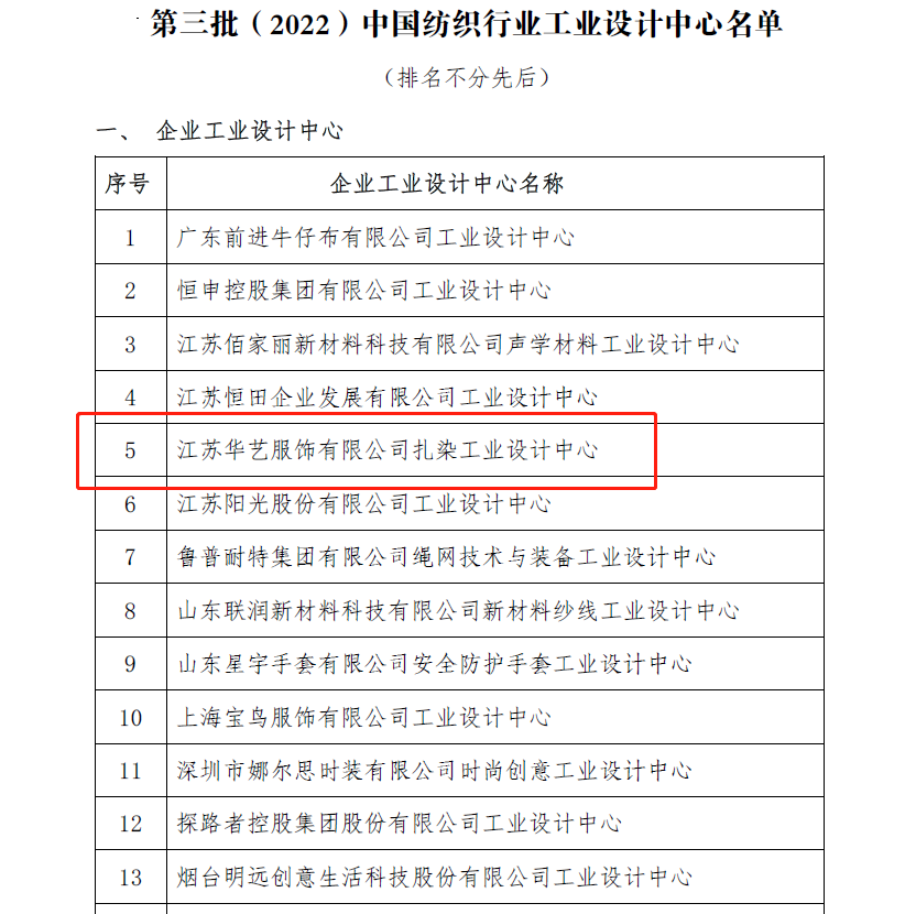 江蘇華藝獲評第三批中國紡織行業(yè)工業(yè)設計中心 |