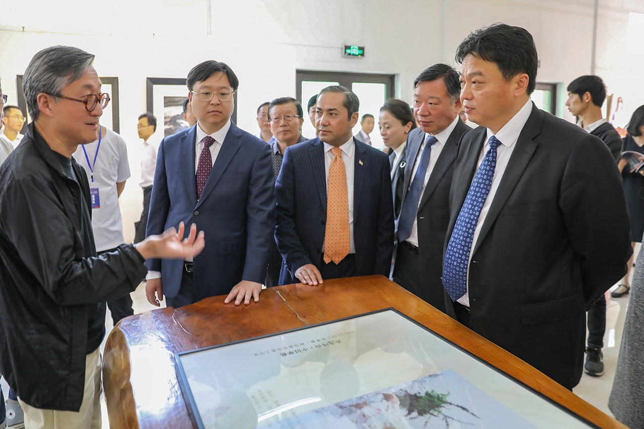 5月22號上午,2021中國·海安523文化藝術(shù)節(jié)暨“一帶一路”國際文化交流節(jié)開幕。國際友人、文化名企與文人雅士齊聚大美海安,共赴文化盛宴! 華藝集團應(yīng)邀參加此次交流節(jié),并被授予《523文化產(chǎn)業(yè)示范基地分基地》。集團人力資源與企管中心總經(jīng)理葛坤鋒代表華藝上臺領(lǐng)牌。 江蘇省非物質(zhì)文化遺產(chǎn)“南通扎染技藝”代表性傳承人周莉攜“華藝扎染”文創(chuàng)產(chǎn)品參加文化藝術(shù)節(jié)文創(chuàng)展區(qū)、胡集街道非遺展,她在現(xiàn)場進行傳統(tǒng)手工扎花的技藝表演,成為藝術(shù)節(jié)文創(chuàng)展區(qū)的一道美麗風景。 江蘇省工藝美術(shù)大師、華藝集團藝術(shù)總監(jiān)顧鳴應(yīng)邀參加海安523美術(shù)館中外藝術(shù)展。華藝扎染獲獎作品《綠之纈-生命之樹常青》,吸引了蒙古國駐華使館大使圖布辛·巴德爾勒及其夫人其其格蘇仁,塔吉克斯坦駐華使館副大使穆哈穆德?葉尕穆佐達等一批中外朋友駐足觀賞,華藝文創(chuàng)經(jīng)理陳綱向海安市委書記于立忠,市委副書記、市長譚真等領(lǐng)導匯報了華藝集團“非遺時尚、華藝文創(chuàng)”的創(chuàng)新發(fā)展思路。 于立忠書記指出,舉辦2021中國·海安523文化藝術(shù)節(jié)暨“一帶一路”國際文化交流節(jié),就是通過搭建國際文化交流平臺,借力“一帶一路”沿線國家文化資源,促進國際文化與海安文化有機結(jié)合,推動海安文化產(chǎn)業(yè)、文化事業(yè)高質(zhì)量發(fā)展,不斷提升海安的文化品位和文化軟實力。華藝集團將以本次文化藝術(shù)節(jié)為契機,積極推動“華藝文創(chuàng)”高質(zhì)量發(fā)展,不斷提升“華藝扎染”文化軟實力?。ㄎ?營銷中心 陳綱 圖/營銷中心 劉敏) 配圖1:顧鳴大師向于書記、譚市長及中外佳賓介紹“非遺時尚、華藝文創(chuàng)” 配圖2:于書記熱情地向中外佳賓介紹“華藝扎染” 配圖3:扎染技術(shù)科科長、南通扎染非遺傳人周莉現(xiàn)場演示扎花技藝 配圖4:華藝扎染文創(chuàng)經(jīng)理陳綱介紹扎染產(chǎn)品工藝 配圖5:“523文化產(chǎn)業(yè)示范基地分基地”表彰牌匾 |