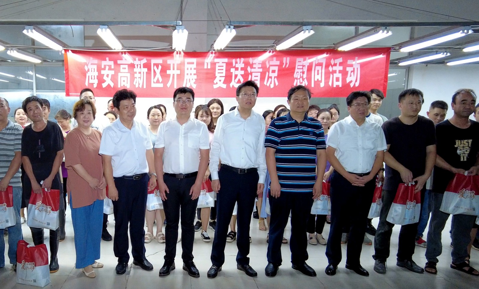 7月赤日炎炎,在持續(xù)高溫的“蒸烤”模式下,生產(chǎn)車間的員工們依然堅守在一線,不懼“烤”驗。為了表達對他們的關(guān)懷與問候,7月26日,海安高新區(qū)黨工委書記鄧加忠、胡集街道黨工委書記孫堅、市人大胡集街道工委主任周龍法一行在高新區(qū)總工會主要負責人的陪同下,冒著大雨來到扎染事業(yè)部生產(chǎn)車間進行慰問,送來了一股夏日清涼。人力資源與企管中心總經(jīng)理葛坤鋒、扎染事業(yè)部總經(jīng)理錢麗霞和副總經(jīng)理王成君一起參加了此次接待。 鄧書記一行在染色車間詳細了解了員工的日常工作,檢查了防暑降溫措施的落實情況。對大家在高溫環(huán)境下仍堅守崗位的工作態(tài)度表示贊賞,同時囑咐大家要注意勞逸結(jié)合,保障自身的健康安全。葛總表示:“在街道黨工委及工會組織的領(lǐng)導和關(guān)懷下,我們一定會盡******努力去營造安全、舒適的工作環(huán)境,保證員工安全度過高溫天氣。” 隨后領(lǐng)導們將工會準備的高溫慰問品一一送到員工手中,這些防暑降溫用品雖不貴重,但它傳遞出了工會關(guān)心職工、體恤職工的濃濃情意,也為員工在炎炎夏日帶來一縷清涼。領(lǐng)導們的暖心慰問和真情關(guān)懷讓員工倍感溫馨和鼓舞,大家一致表示,會將這份關(guān)懷轉(zhuǎn)化為努力工作的動力,繼續(xù)鼓足精氣神,做好本職工作,為公司發(fā)展作出自己的貢獻!(文/扎染事業(yè)部 陸萍) |