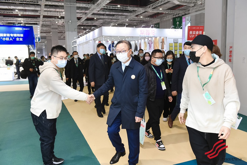 中國(guó)紡織工業(yè)聯(lián)合會(huì)會(huì)長(zhǎng)孫瑞哲一行蒞臨華藝集團(tuán)展位 |
